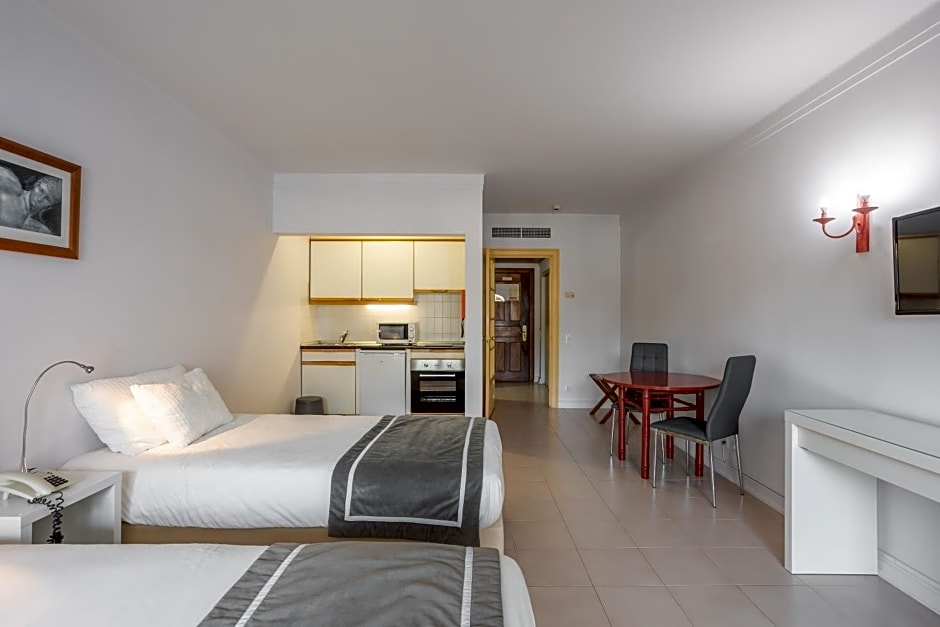 Studio Standard is 323 square feet and includes either 2 single beds 80-130 width or a double bed 131-150 width plus cable tv.